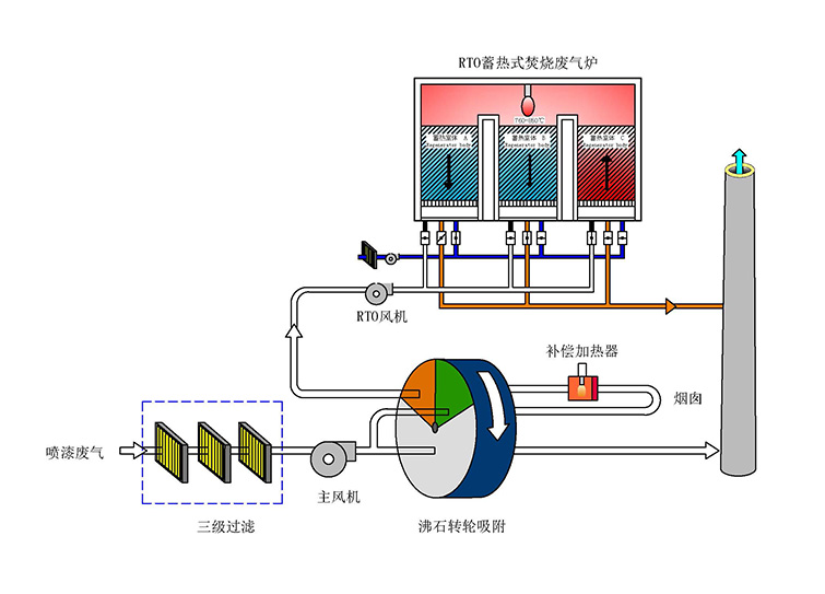 工藝流程圖(沸石轉(zhuǎn)輪+RTO組合)